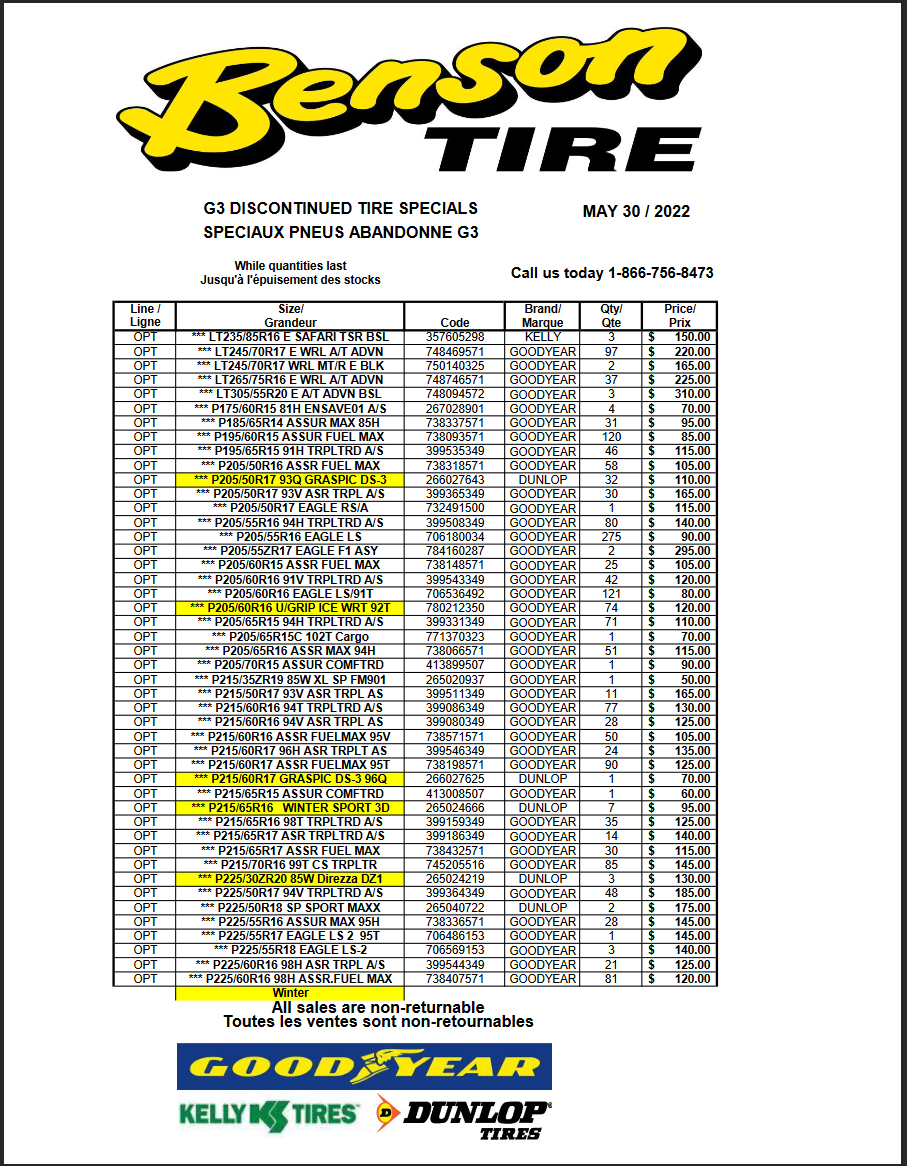by selecting CATALOG tab above & selecting TIRE CATALOG.